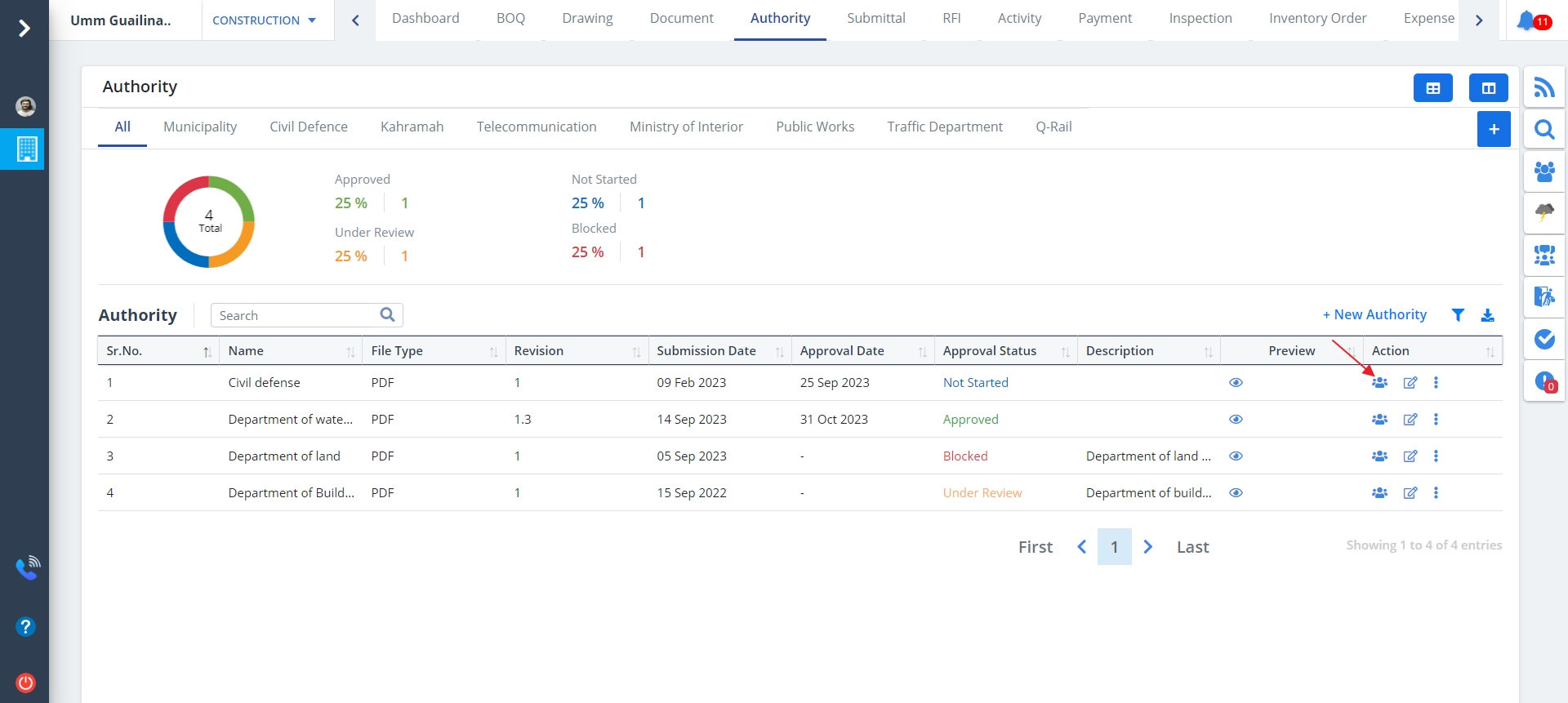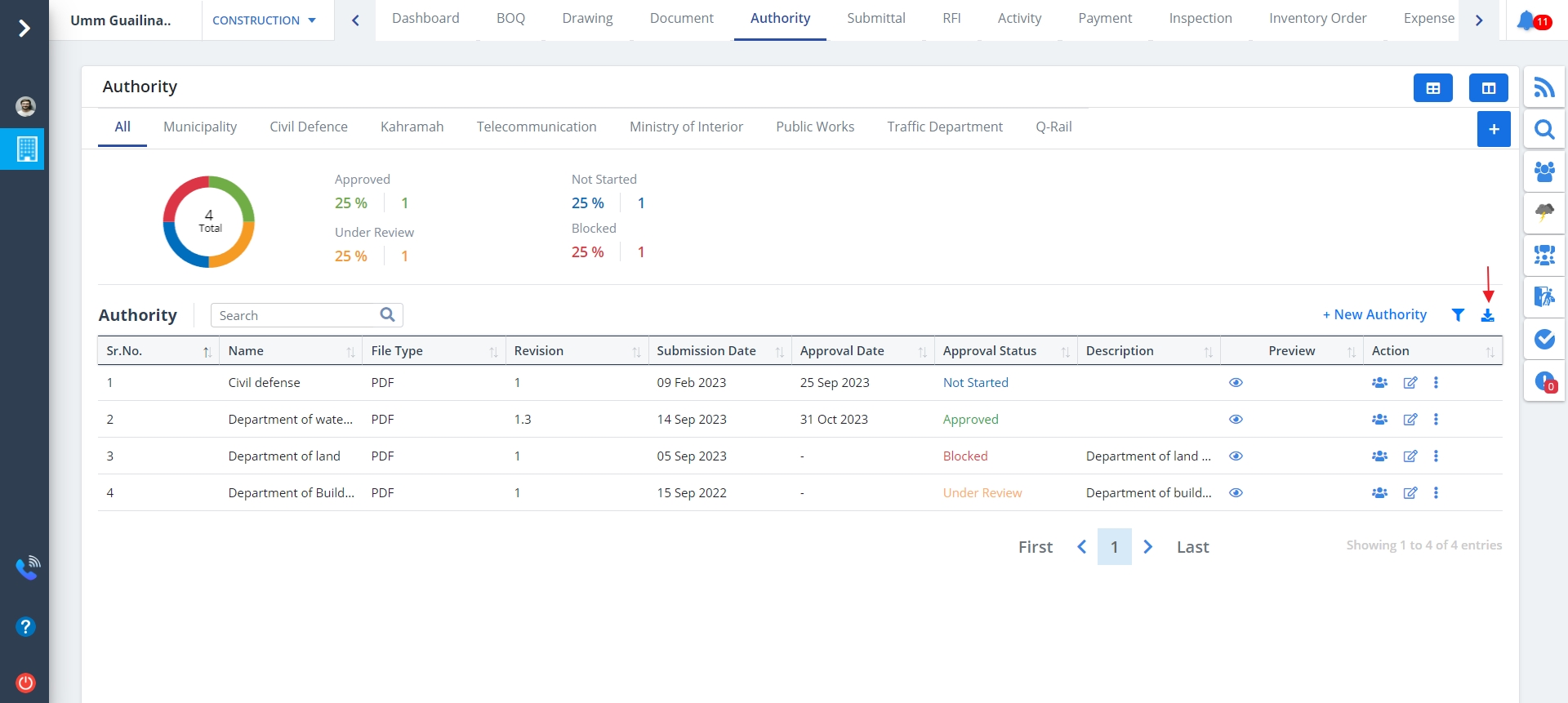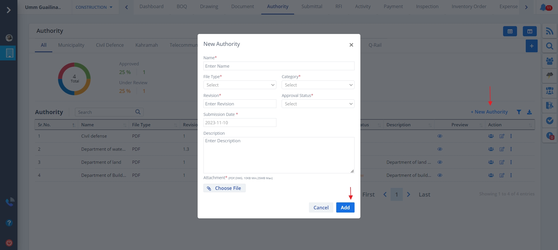 To add a new authority, click on New Authority. Add the details including document type, approval status and category. Now click on Add button.