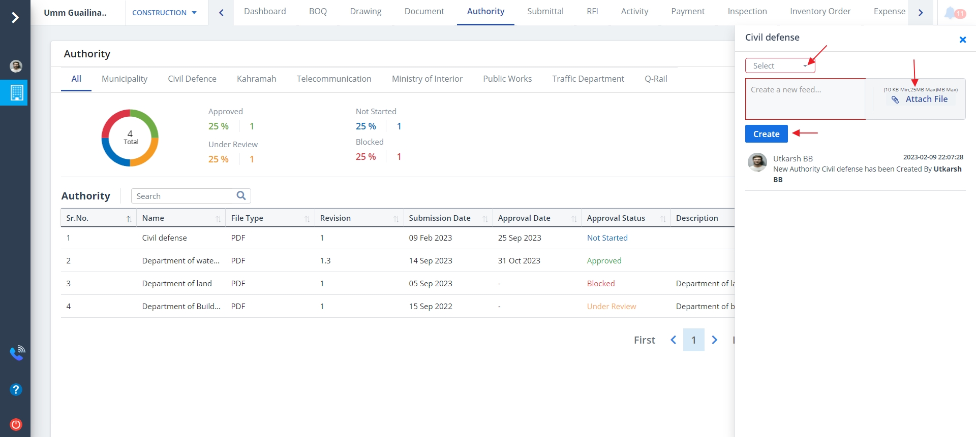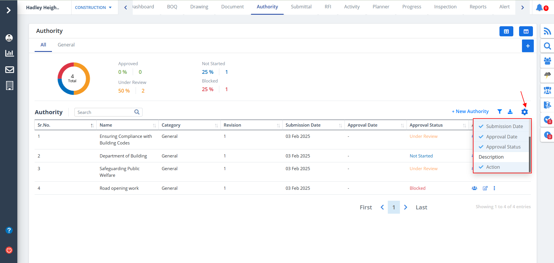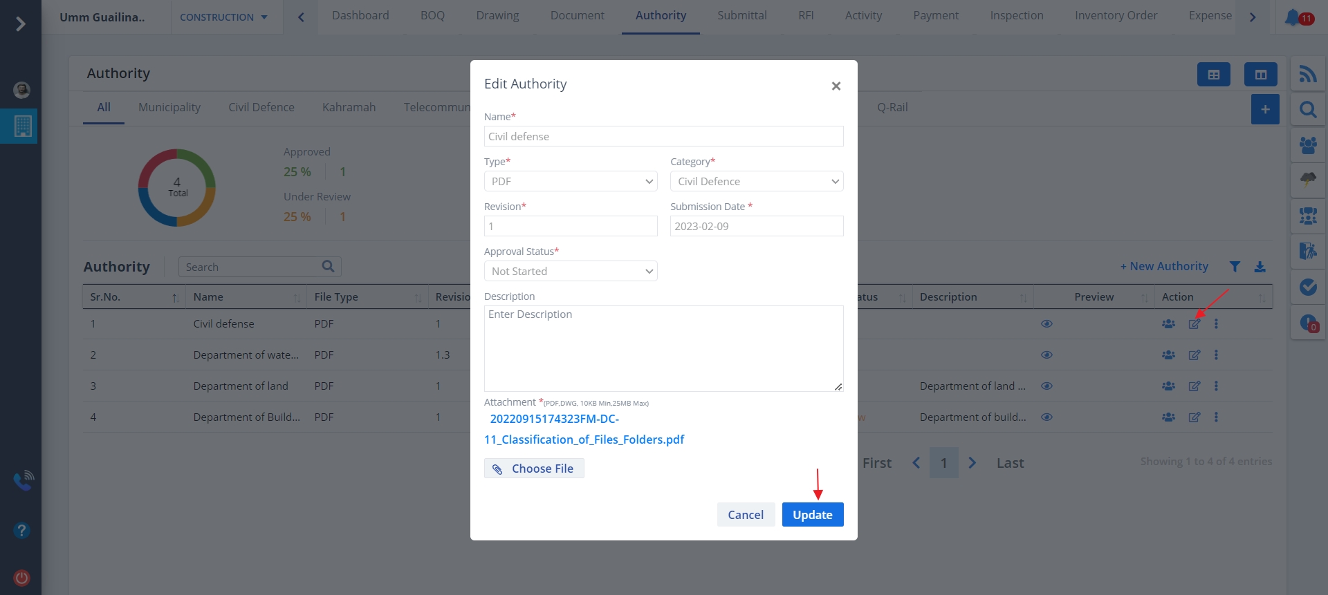 To add a new authority, click on New Authority. Add the details including document type, approval status and category. Now click on Add button.