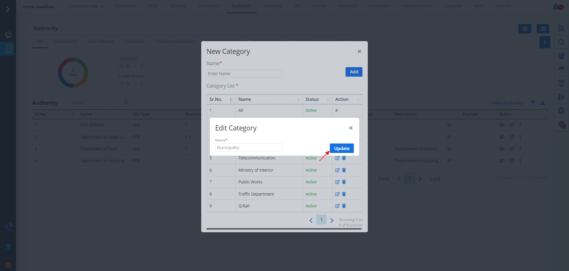 - Click on Edit option to edit an existing category. Just click on Update thereafter.