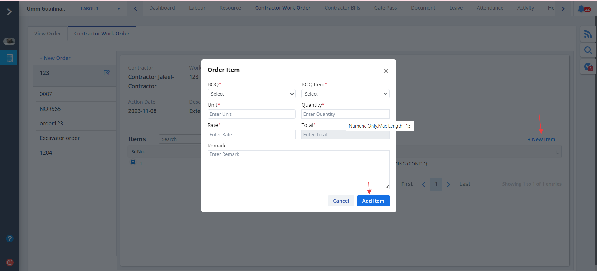 - Now click on New Order again. Fill the details and click on Add.