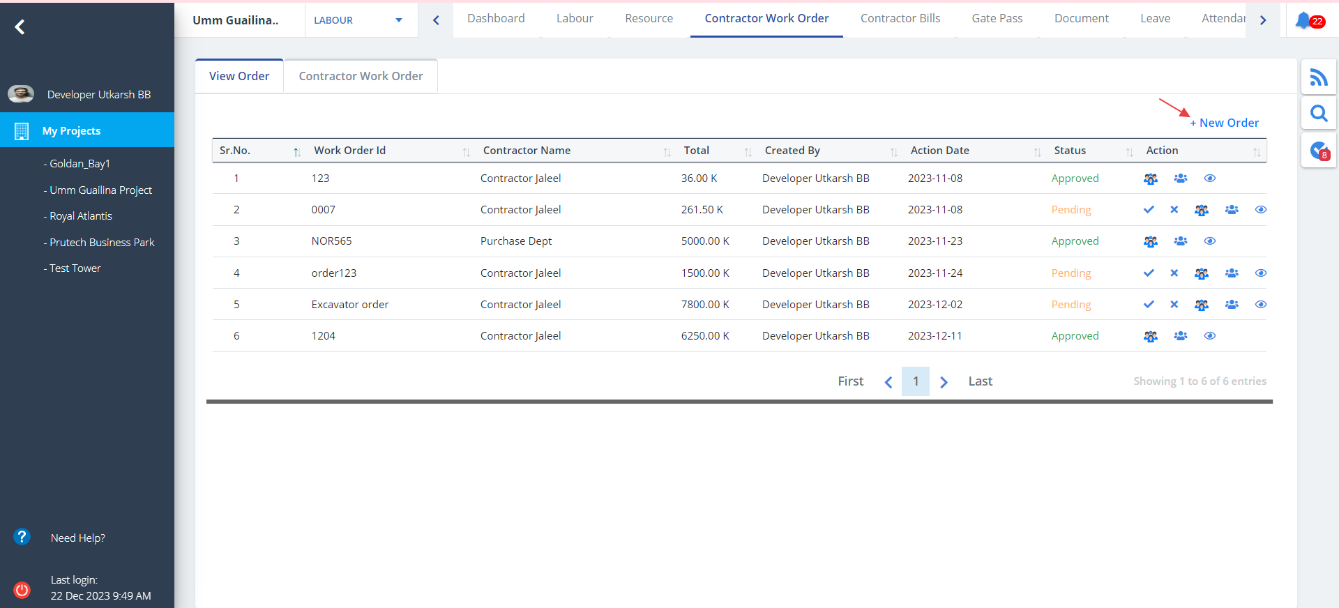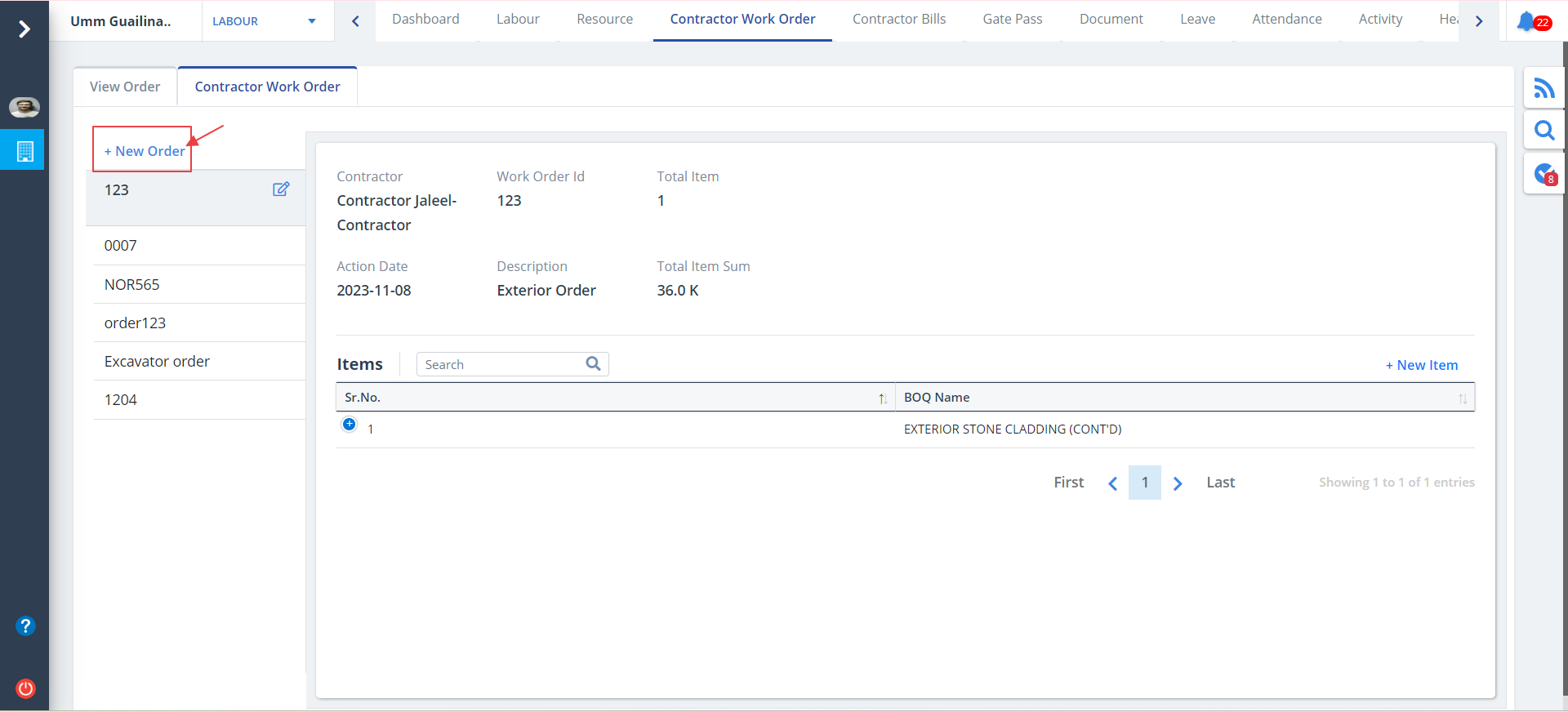 - To add a new order, click on New Order.