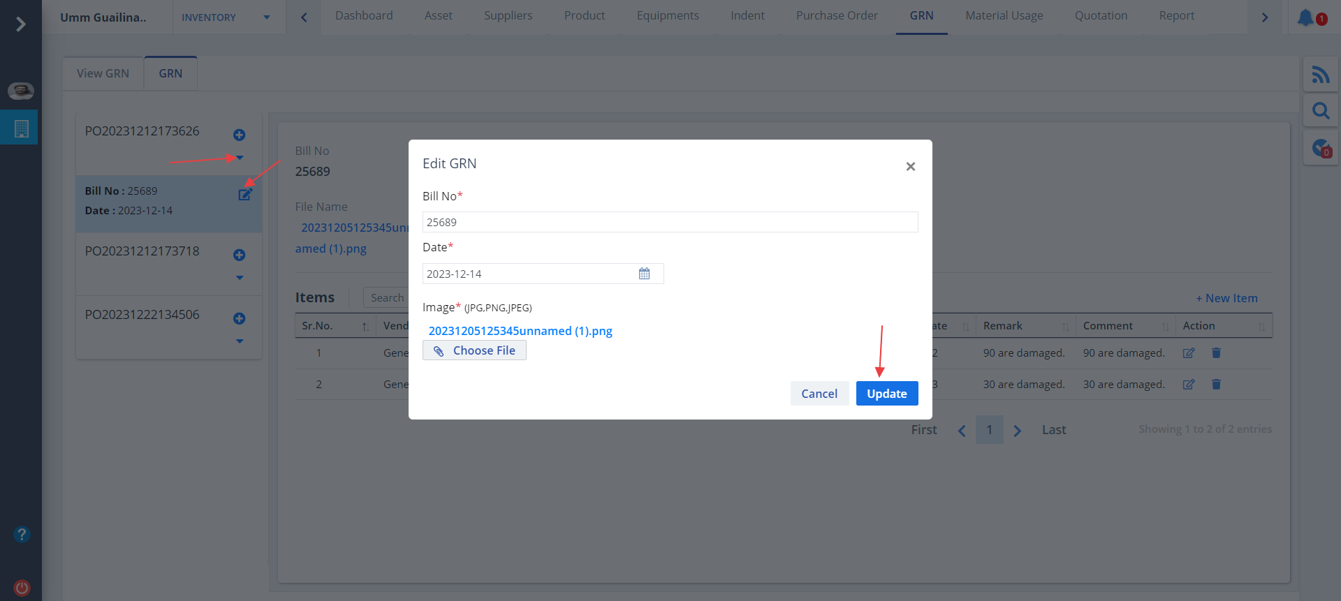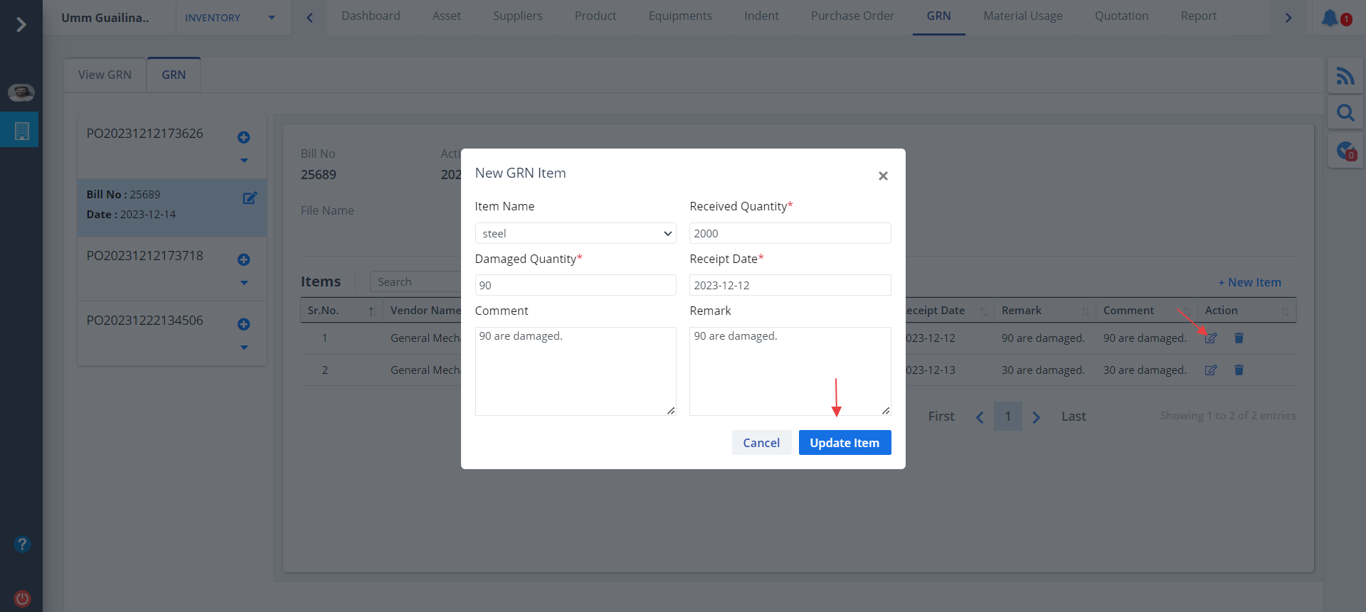Edit GRN Item