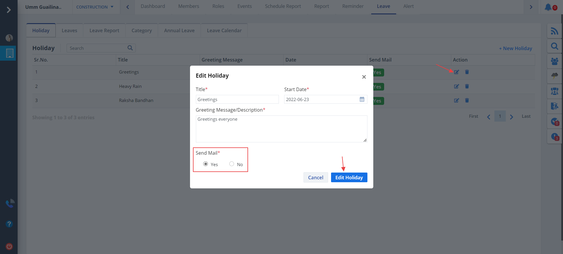 - You can also delete a holiday from here. Just click on Delete next to Edit button.