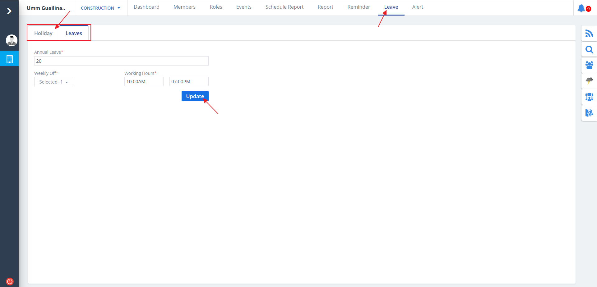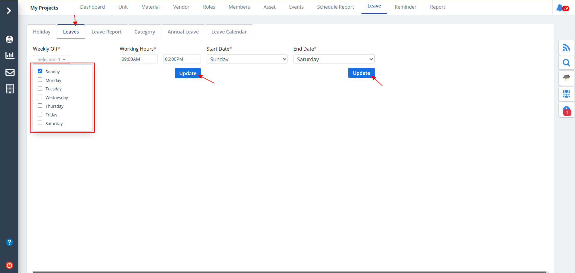 - Now enter details. Select weekly off day/days, mention proper working hours and start and end days.