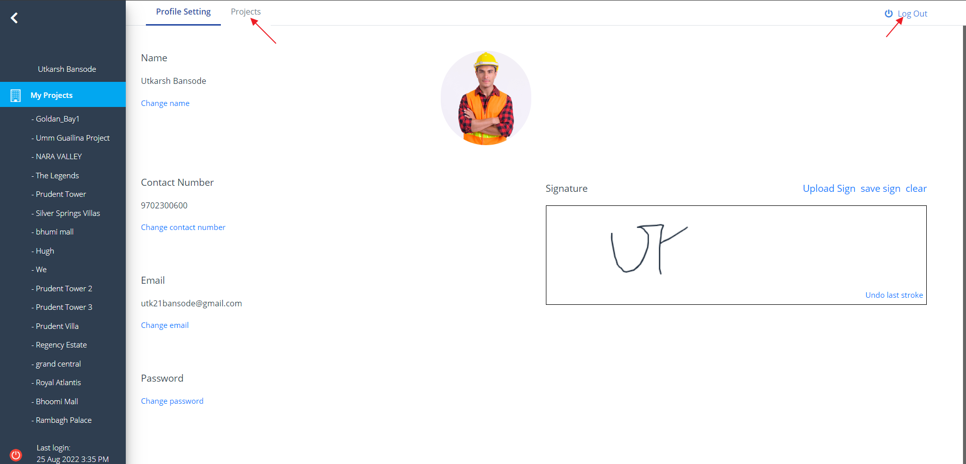 - If you want to log out from this page, click on Log Out on the top right of this screen.