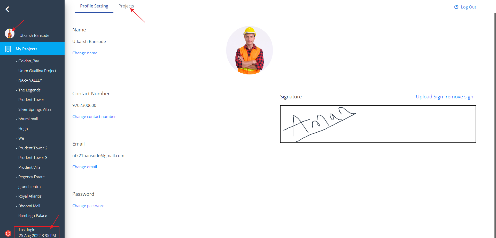 - You can switch to the previous section once again. Select Projects from menu.