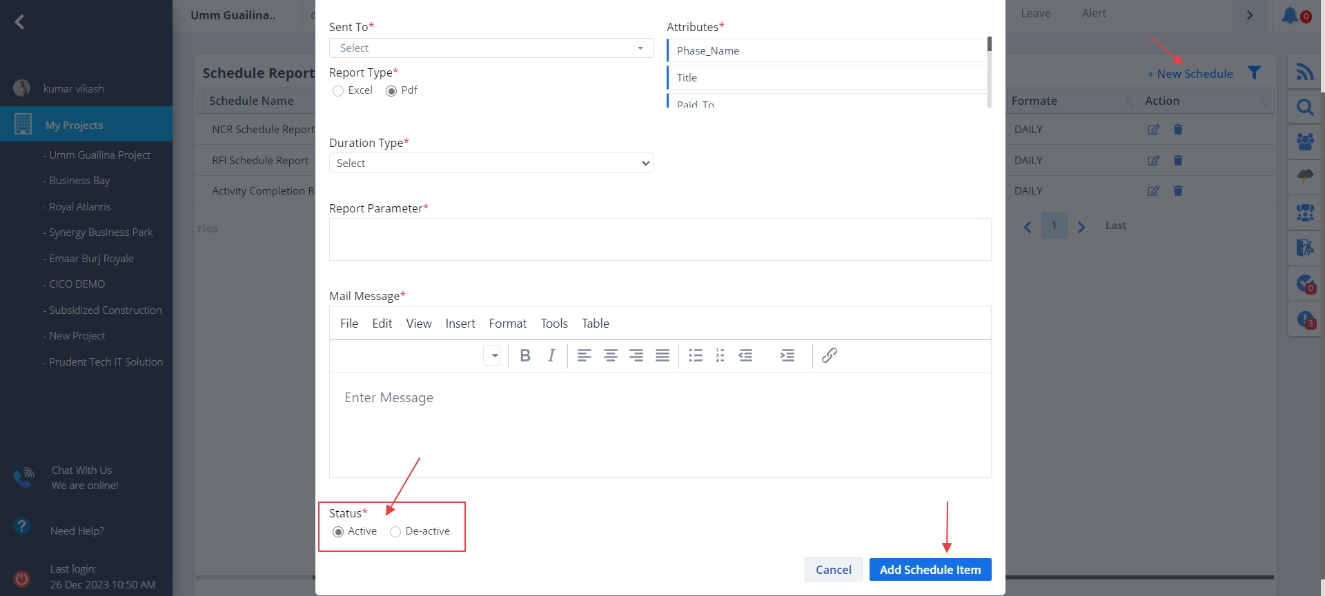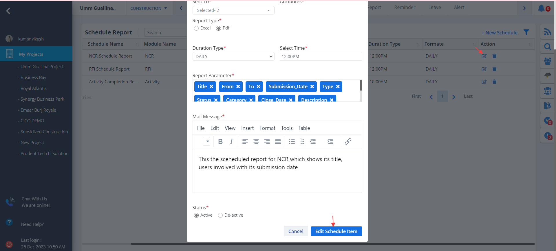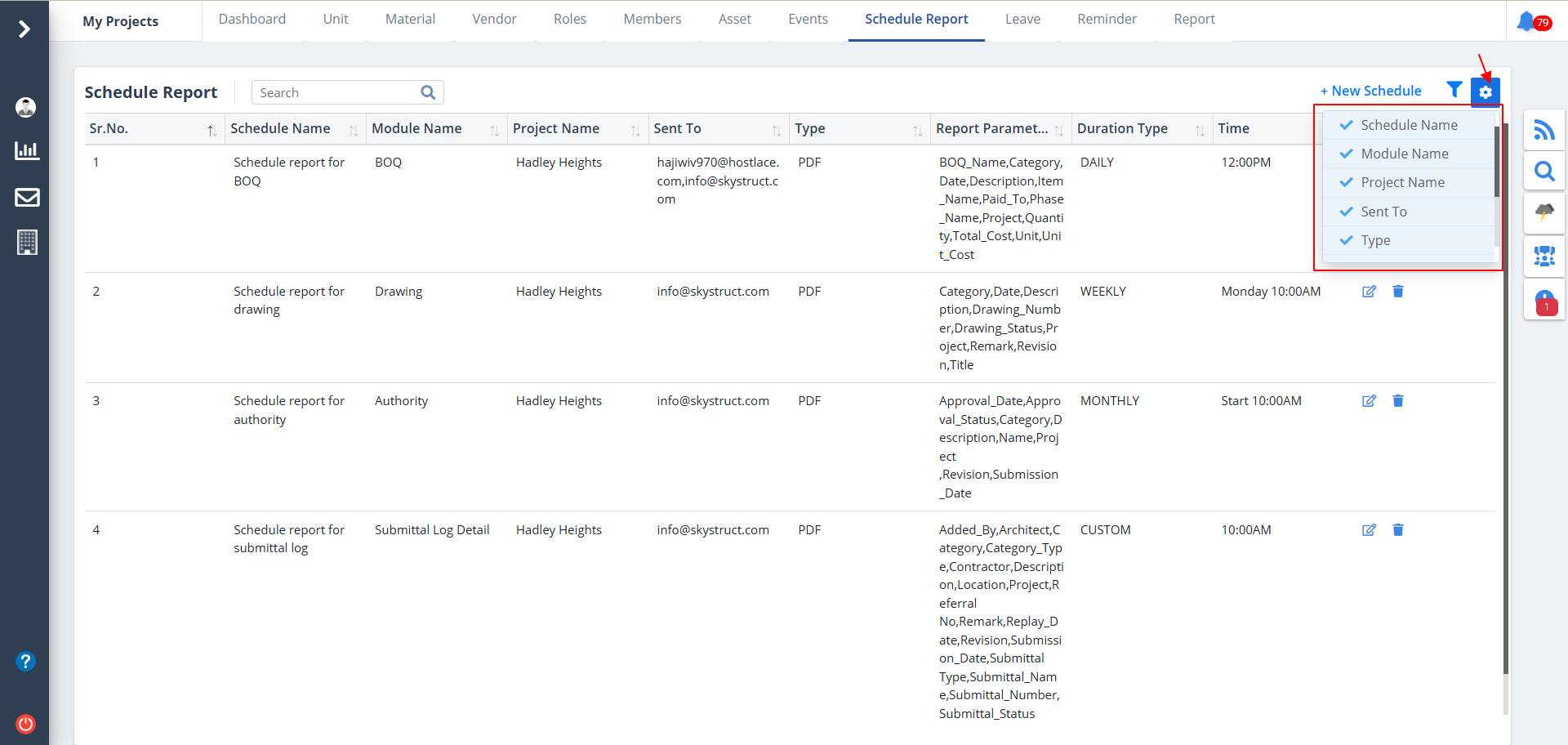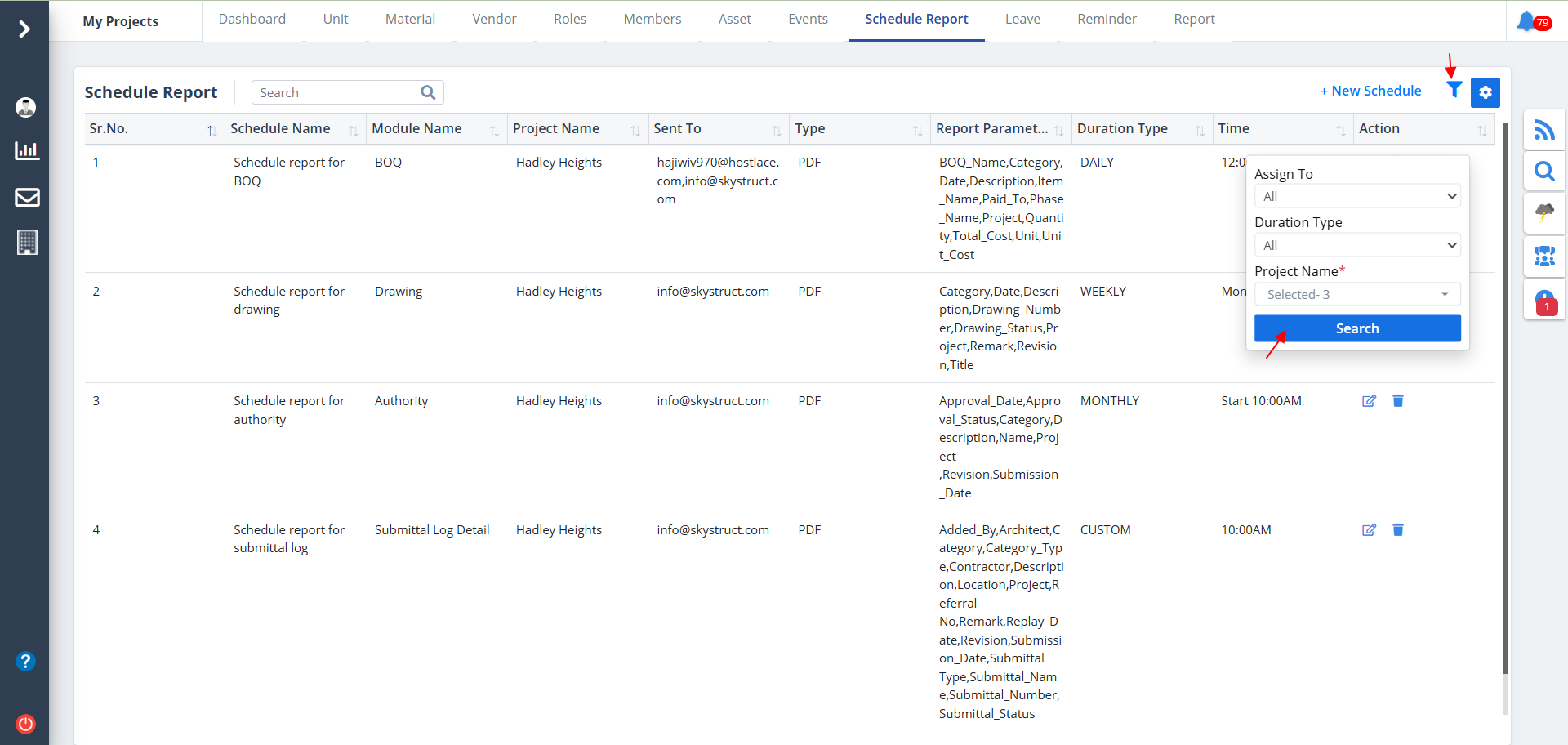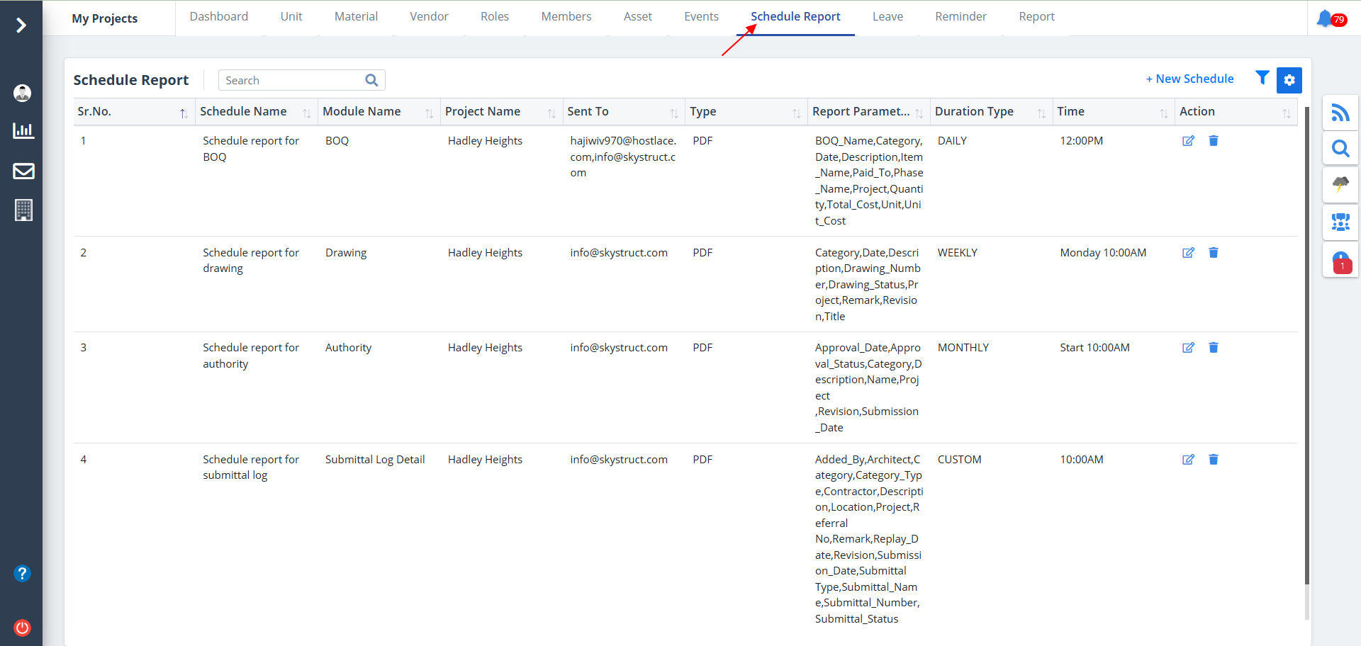 - Select Schedule Report from menu. If you have already scheduled any report, then it will be listed.